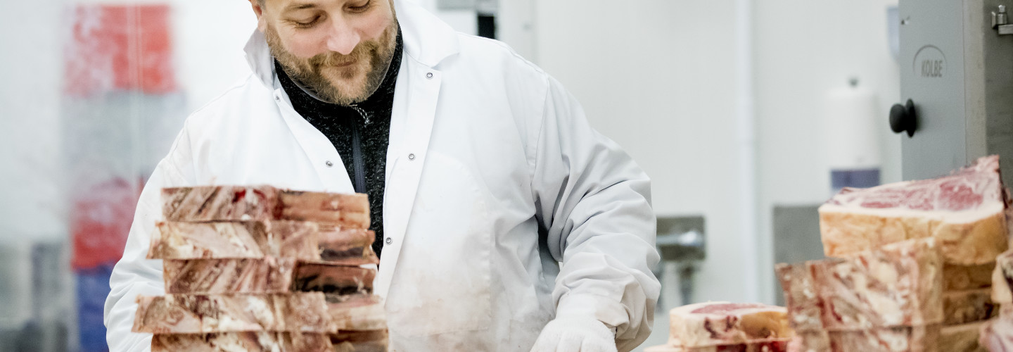 Kötthallen Sorunda är Sveriges främsta grossist på kött, vilt, fågel och chark till restauranger runt om i hela Sverige från egna gårdar och framstående producenter i hela världen. Vi styckar och bereder kött i våra egna anläggningar och har kontroll över varan från uppfödning till färdig produkt. Vi har utöver det egen tillverkning av korv och chark från egna recept.